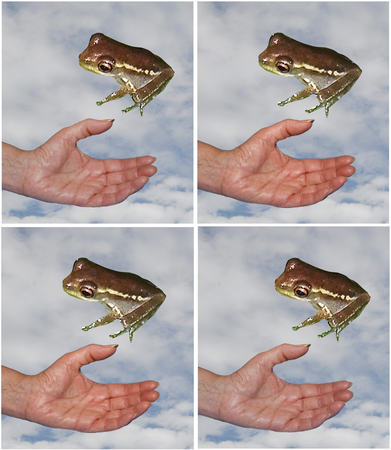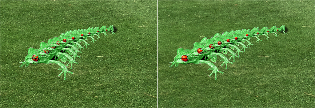 Amazing that you caught them with the 3 different view points. The background is not cluttered; just some nice green grass.