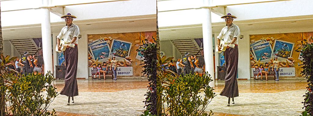 A good subject for 3D. There is a lot to look at here. Very colorful. It would have been nice to see more of the people facing the camera. |