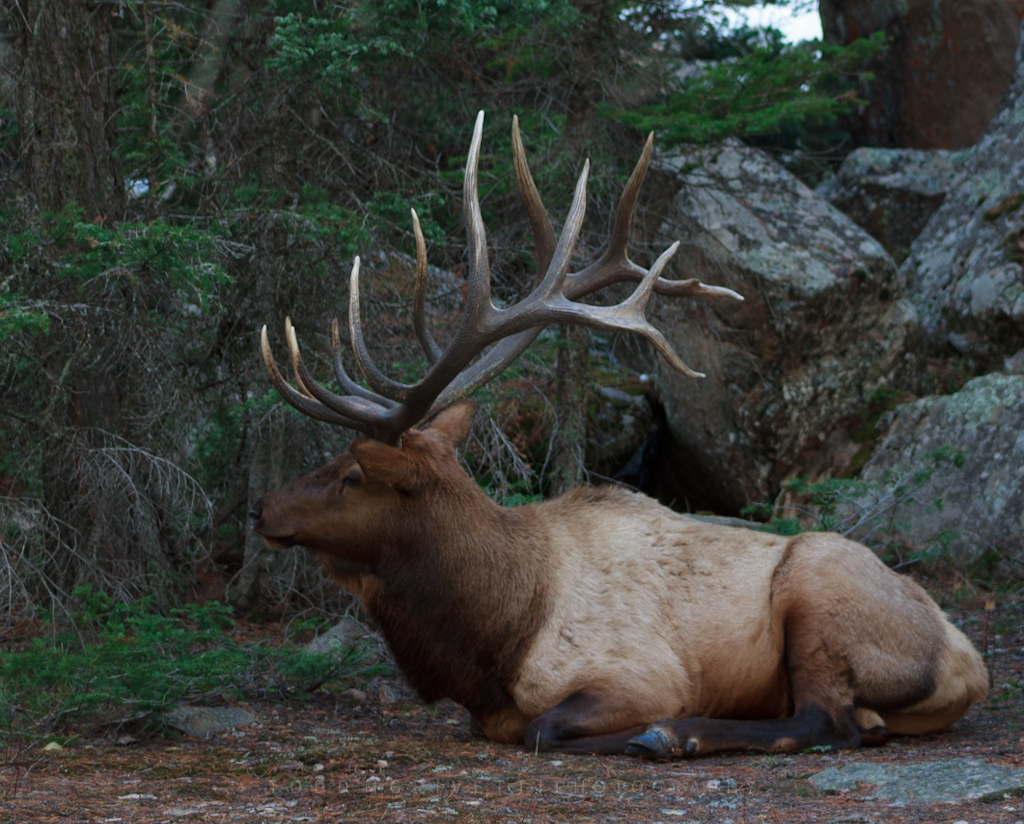I was able to count 14 points on him. He had been grazing on the trail and then decided to lay down. I have a profile shot and will look at that this to further detail the count.