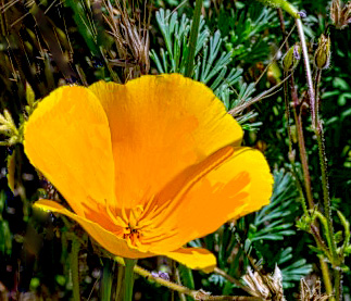Hi Jean...I had fun playing with your photo. I cropped it down to one poppy, got ride of the weeds across it and some in the background. Of course now it would be only One California Poppy! I agreed that your poppy was sharp but just wanted to see the one sharp poppy without weeds. Forgive me for changing the look of your photo! |