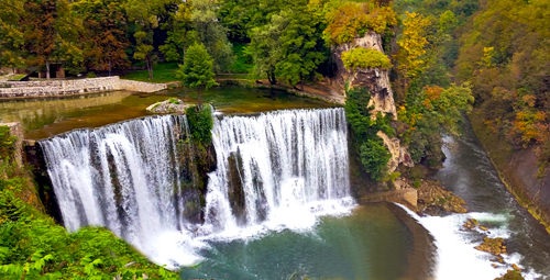 Since the waterfall is the main interest I would crop and clone out the buildings,sky and observation platform A position a little more to the left might have cut out the platform in camera |