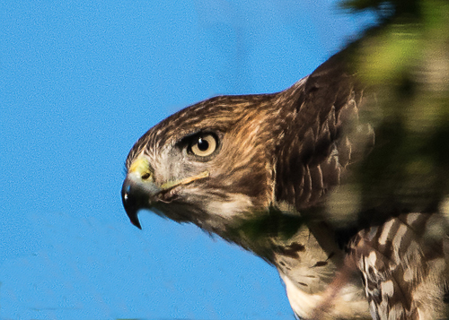 A great capture with the sharp eye and catchlight Shake reduction filter in PS CC might be able to get it even sharper.I find the foliage in front of him distracting since it is out of focus and I would clone it out and or crop in further.There is also a brown line across the bottom and above his head I would remove it See attached |
