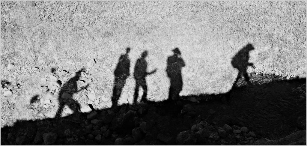 I might clone out or content aware move the last person on the left to make an uneven number especially since his head is elongated in a distracting way. I have attached an image with 5 shadows
