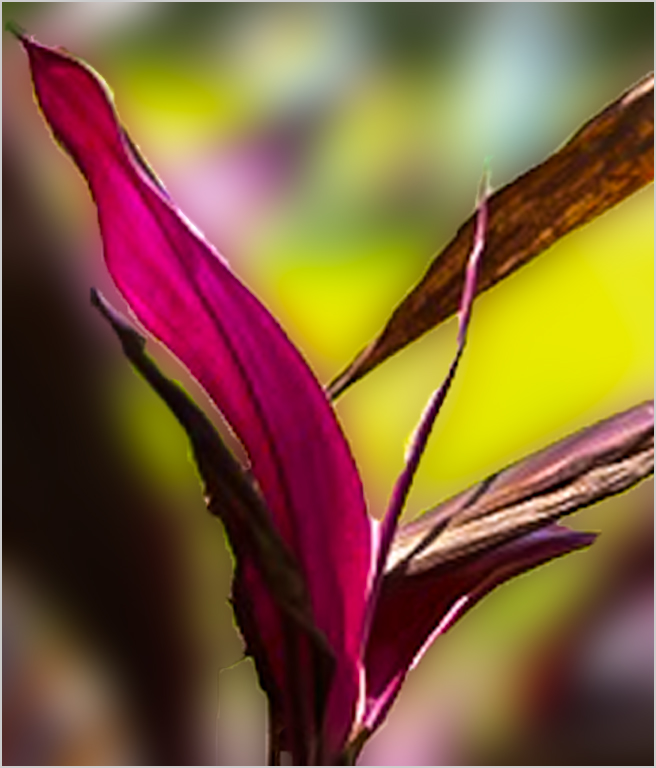 I agree with Dorinda good attempt at rescuing the image I like the new colors However the original and the worked on image both lack a focal point Also your selection has edges which look like a selection I cropped the original selected part of the red foliage and blurred the background and added a stroke My selection should be better also A selection should look like it isn't there |