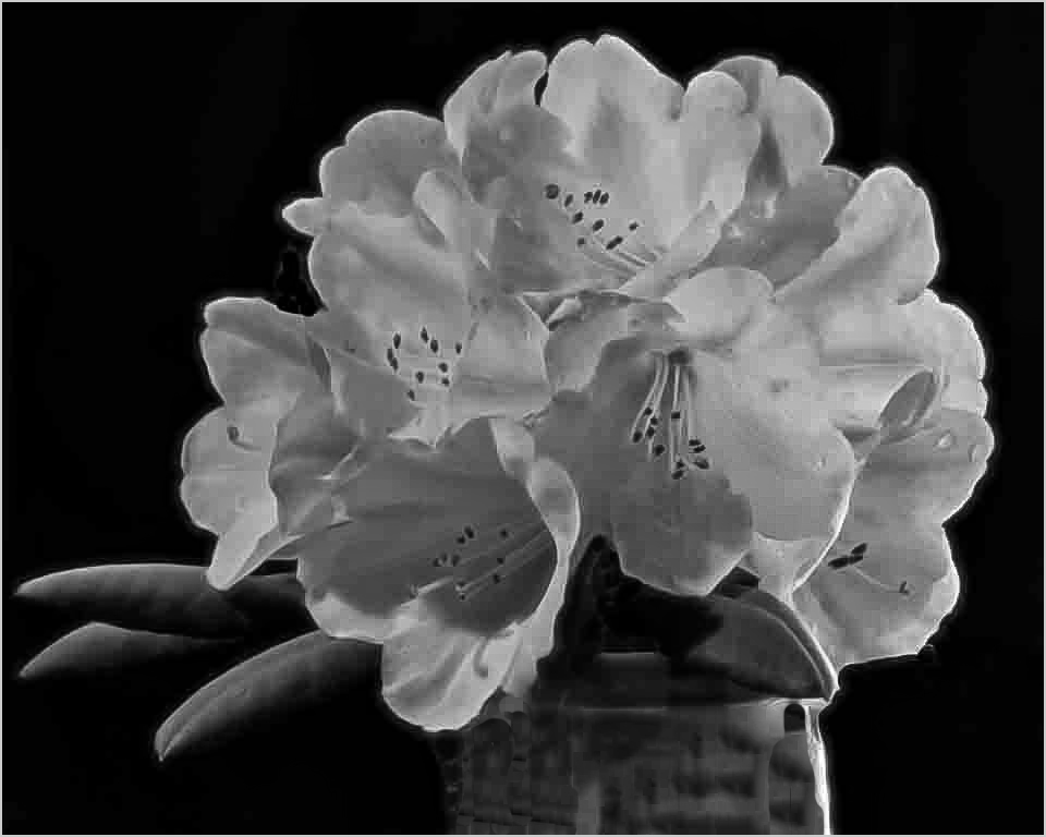 I too like the image in mono Beautiful blossoms Even though I usually like crops here I liked your left leaves I felt the white lines in the vase detracted so I cloned them out and put a stroke around the image |