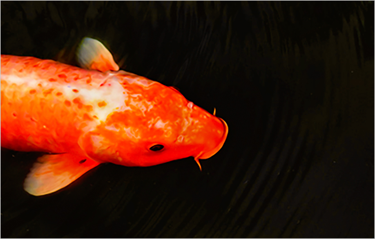 The color is beautiful especially against the black background When I opened it in Luminar 4 I saw the ripples better and like them. I would crop in a lot making it seem like you planned only to have the head I agree with Leonid to tone down the white spot on its back |