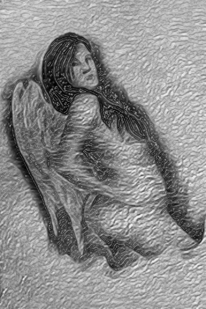 As the tattoo of the "lady angel" on his back, drawn my attention, I played a bit with that tattoo and this is what came the output.