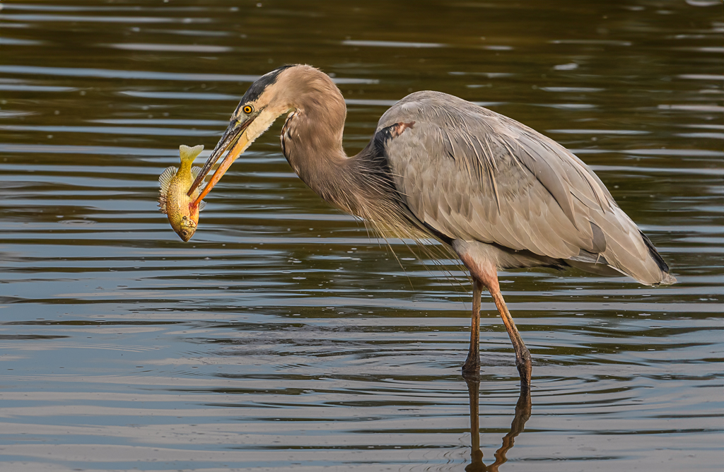 Hi Isaac, Thanks for your comments. Earlier in the spring I saw one GBH catch a really long fresh water eel and swallow it up. I cropped this image at the bottom but not the back or top of the bird. I only had my 500mm pF lens with me and we were on a boardwalk, so not much room for me to get farther away. I added some space on top and the back using photoshop generative expand. What do you think? |