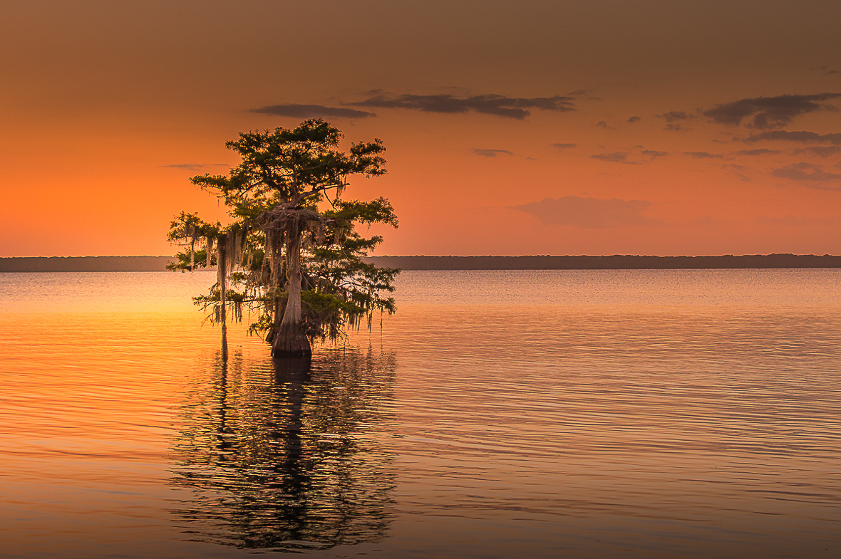 Gorgeous sunset at the lone cypress. What do you think of a more rectangular crop? I have been meaning to go to Blue Cypress Lake but it didn't happen this year either. |