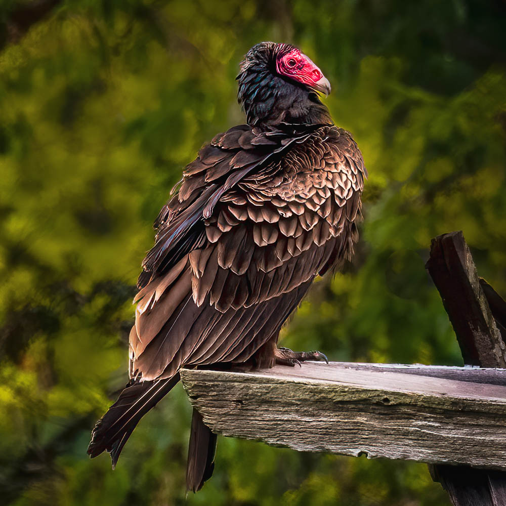 Mary, Cool composition! I find the turkey vulture to be such an interesting bird to observe, even though Bruce is right about the face that only a mother could love! Last year a very large number of them hung out across the street from my backyard while they enjoyed something that was in a deserted, almost dilapidated barn. I enjoying watching them. I've attached one of the "portraits" I took of one of them. |