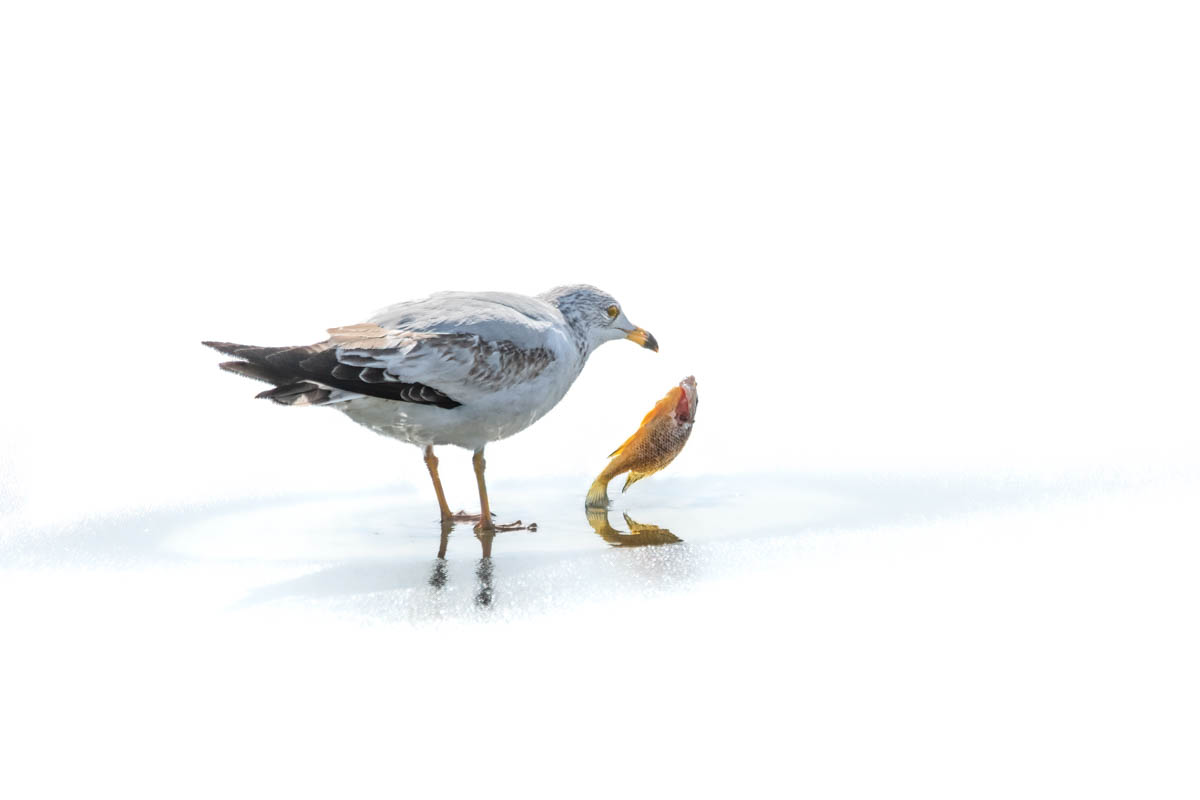 Barbara, Thank you for your comments! Yes, the gull had dropped the fish from its mouth. He was really working hard on it and then eventually an older gull swooped down and grabbed it! |