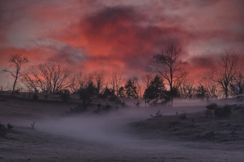 Thanks Phil. Good suggestions. I hadn't cropped that foreground thinking that if I printed it, the standard 2:3 ratio would cut off part of the fog line. |