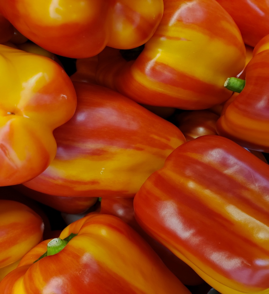 I definitely prefer the two stem version and agree with Larry that the diagonal helps so much, BUT I'll go a step further and flip the image (like posted) and now the green stem is your point of interest. The glare is a little more pronounced with this composition, so I just cut the hi lights to do a quick job. I hate peppers so I wanted to cut them and run. |