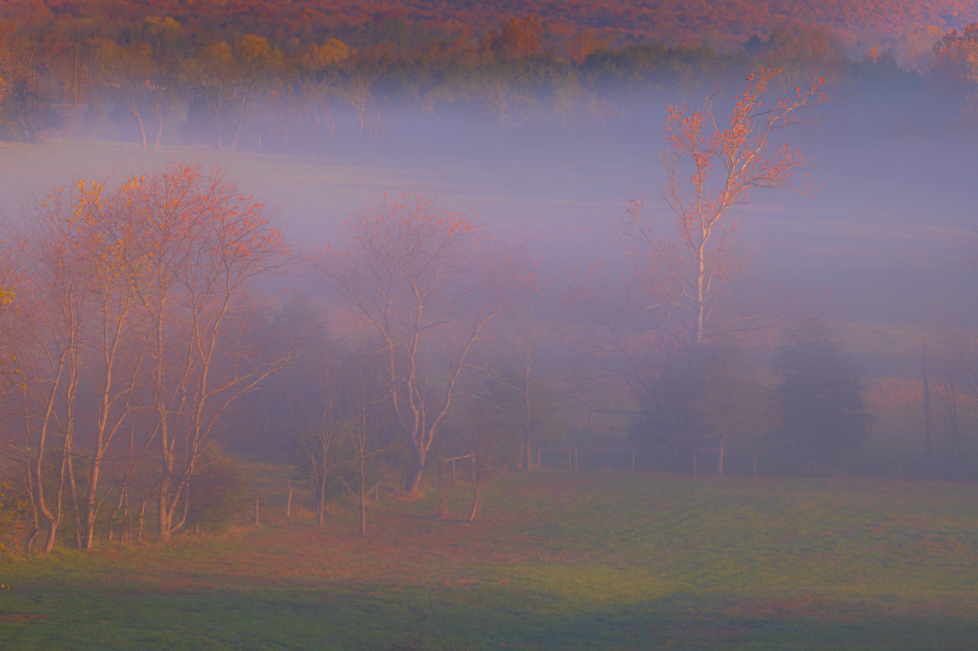 Thanks Stephan. Yes, positive not on the lens, the fog was rolling and moving about my back yard and I used the 30sec exposure to capture as much as a could. It disappeared in short order as the sun came up over the hill. |