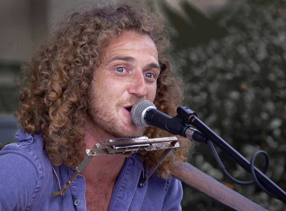 Lovely capture of the musician. I think you could probably refine the mask on your face lightening to include all the hair - it looks to me that there is a distinct line of dull hair at the top left that you missed with the brightening. I think the background is also a bit distracting. I had a play in PS, dropping the exposure and colour saturation on the greens at the right, and darkening the background area at the top left, just to see what it looks like. What do you think? |