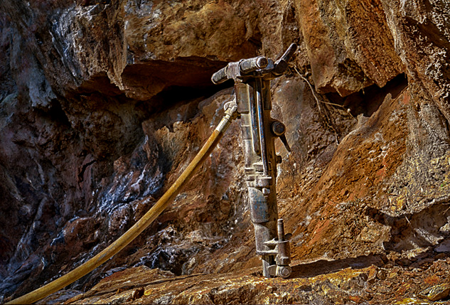 You can make the drill stand out because it is a different color and a different texture. It is almost colorless (except for the dust on it) and it is smooth, not rocky. To make the drill stand out more, I worked with the reds and yellows in Selective Color (PSCC) to make the background darker and with white to make the drill a little brighter, then with Levels to compress the brightness range. There is a slight vignette to darken the edges and hold the eye in the frame, and small changes in brightness and contrast as a final adjustment.