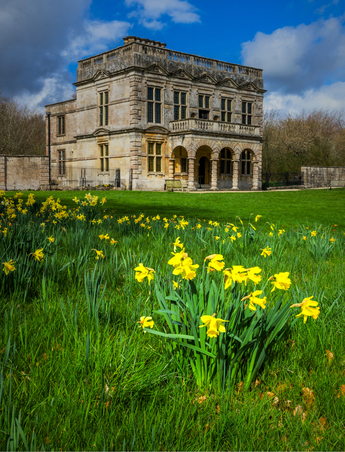 This is clearly a shot with divided interest, spatially divided almost equally between the building and the daffodils. I suggest that the main center of interest should be the daffodils, and that you make the building less prominent by cropping, and the daffodils more prominent by making them brighter, something like this.