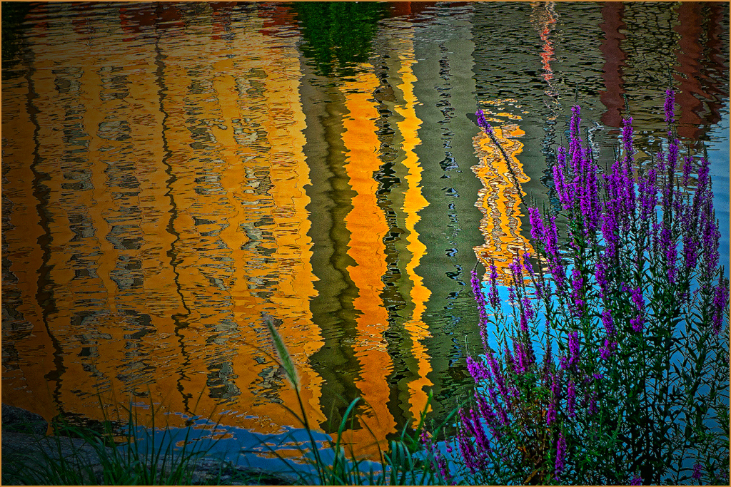 You have added a fresh new idea to discuss, a combination of an abstract reflection with a colorful and contrasting foreground. You have a good collection of picture elements to start with.