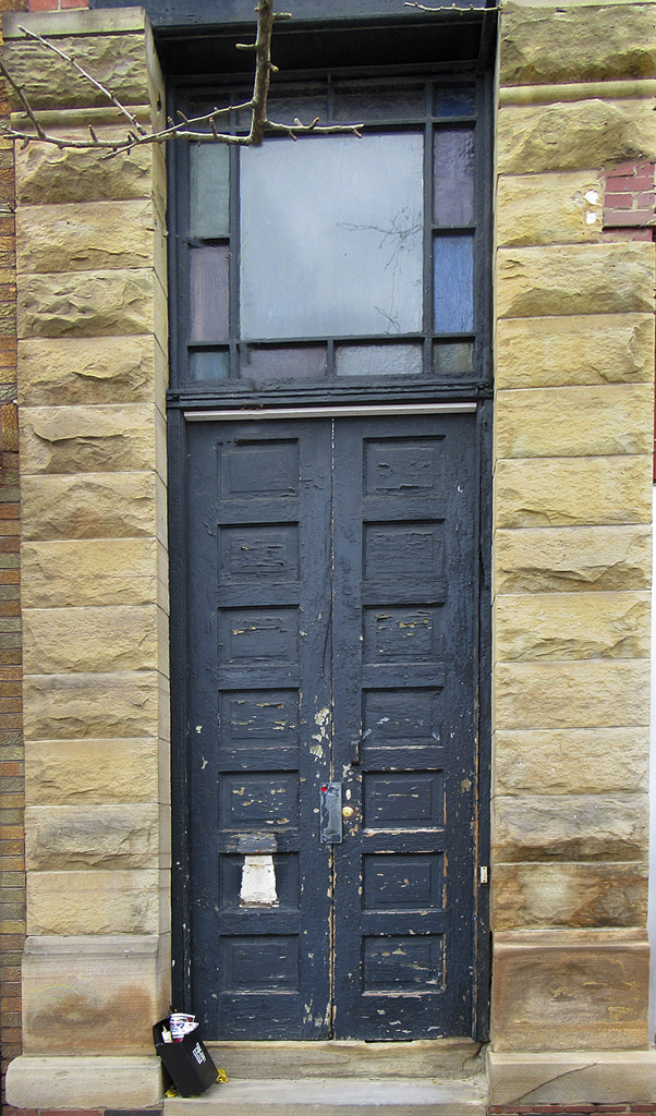 I have to agree with both of my colleagues: The brightness of the window competes with the white and black elements at the bottom left. It needs to be simplified. The door is your picture; if it were mine, I would crop from the sides on the basis that you don't need so much masonry to hold the door in place in the image, but the bricks actually distract. I suggest warming the image a little.