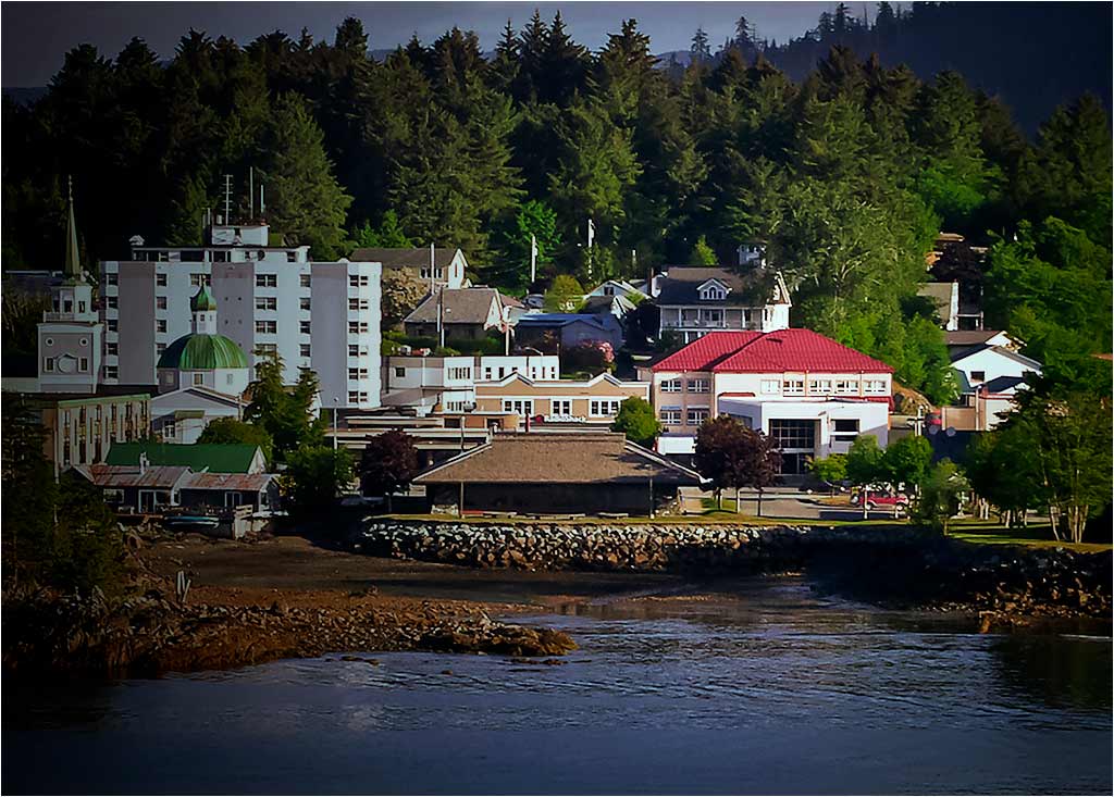 I see this as a photo travel image that illustrates an interesting small town on an important travel route. Elizabeth's image invites us to visit this unique city, and it does that well. The complex of white buildings on the left do compete for attention with the red roofed building on the right, but we need both to tell the story. I suggest that you try something like this. I used a long vignette from the left to give emphasis to the red-roofed building,Selective Color to bring out the colors a bit more brightly, and then adjusted brightness and contrast. The trick I tried was to make a somewhat busy image less busy. Did that help?
