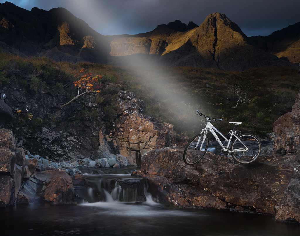 Now, this IS different! It is a very well done composite. I think you can make the composition stronger by darkening the waterfall slightly; it's brightness competes with the star of the show for attention. If it were mine, I would reverse it, too.