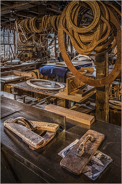 For a busy scene this image works. The color balance has been well rendered. I may be inclined to tone down the circle frames at the top and add a bit of brightness to the foreground. I see the tools in the foreground and the main subject. |