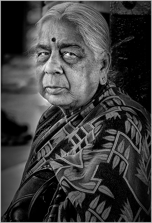 I like everything about this picture except the bright areas to the left side. The texture in her face, hair and clothing is great. I took a different approach from Isaac. I made a quick selection of the area to the left and inverted the selection so I could darken the bright area to appear natural. I also did some selective burning and vignetting. I also added a thin grey stroke. |