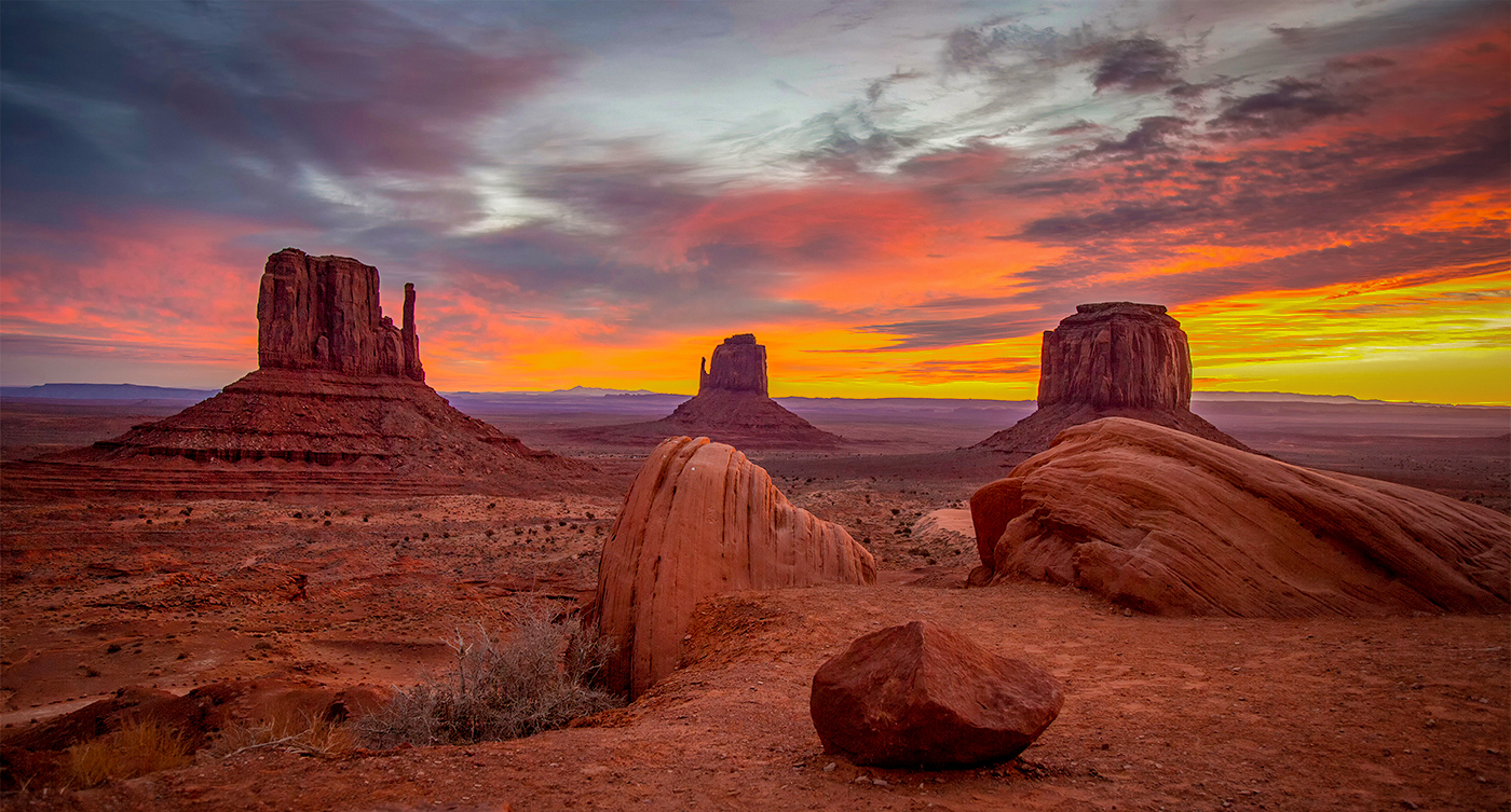 The infamous Monument Valley parking lot shot. Kudos for getting up early for the sunrise. I like the composition, sharpness and tonal values. My only question is why didn't you make an HDR image. The area at the right appears blown out and there's clipping in the whites. I took the liberty of opening your image in Camera RAW. Here's your recipe: