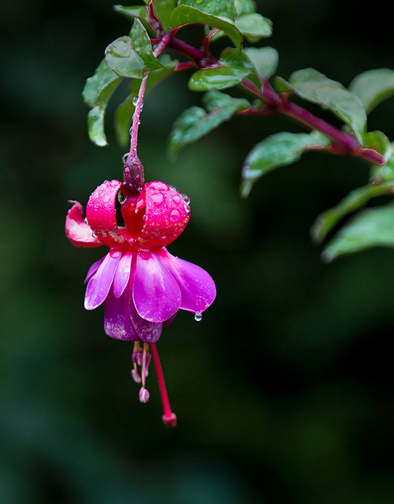 Personally, I would crop this much tighter. The present composition has the subject centered where Isaac's composition has it off center and tighter. I cropped a bit tighter, applied a gradient mask to darken the leaves. |