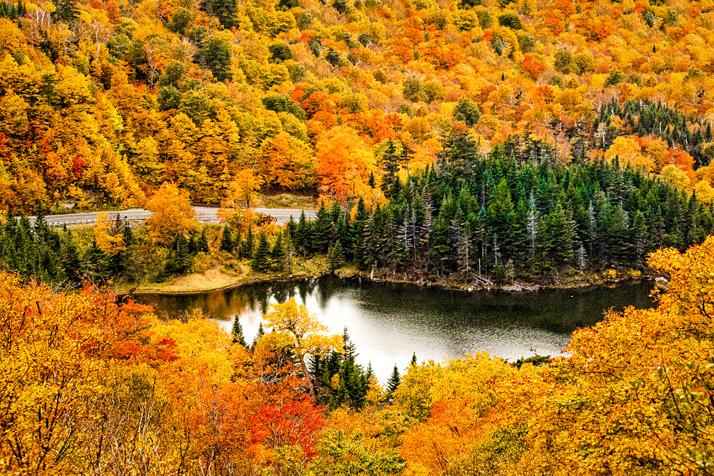 The camera angle is perfect and the lake and trees offer a center of interest. I honestly prefer the first original. I did a little work on Photoshop to enhance the existing colors and greens. |