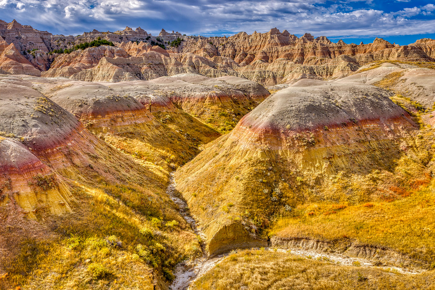 You certainly put a lot of work into this image, and everything works. Unfortunately, I was unable to get to the Badlands while at the Rapid City Conference. Personally, I'm attracted to the foreground area. The background and sky are secondary. I tinkered with your image in PS and added the AUTO in Camera Raw Filter. It gave it a tad of added pop. |