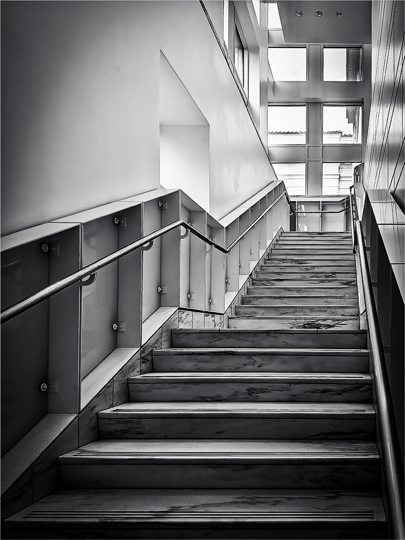 One cannot miss with a spiral staircase. The bright blue area in the upper left has the tendency to pull my eyes away. |