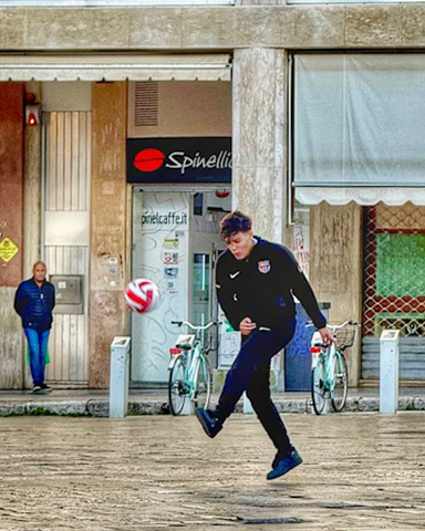 Nice action shot. Overall there's a lot of information in this scene. I would be inclined to crop the white object out on the left side and just slightly on the right side. It puts your subject in a stronger position and makes the second person in the background in balance with the subject. |