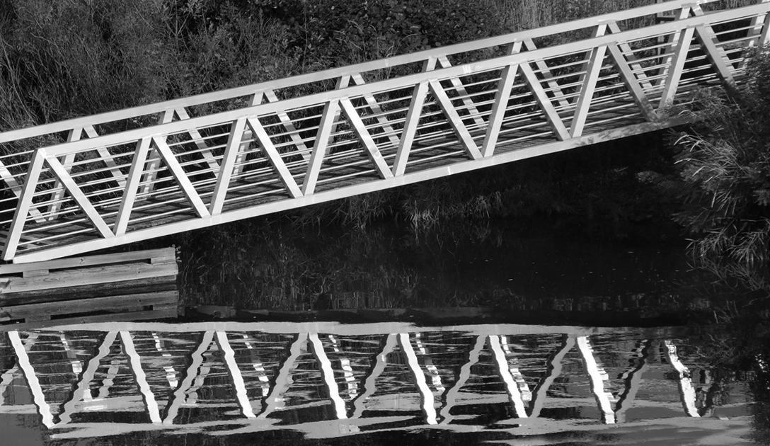Paul, here is a suggested edit from me...in Photoshop, I flipped the image (as per James' suggestion, straightened it so that the reflection was horizontal and adjusted the brightness, contrast and exposure in selected areas. The chainlink fence I simply cropped out but I also cloned out (not very carefully, I am afraid) the small tree in the centre, which was also drawing my attention. To me this still allows for the abstract quality of the shot but not sure what you think. |