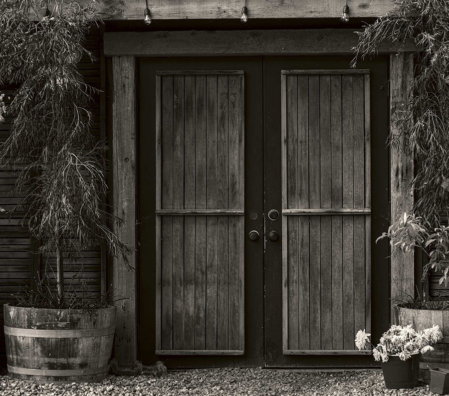 Mary Ann, I think this image works really well in monochrome and I like your crop, eliminating some of the foliage on both sides to bring more focus to the doors. Nice texture on the wood (of the doors, but also the barrel) that could be brought out even a little more (IMHO). I took the image into PS and adjusted it just a bit so that the verticals are straight - unfortunately, this throws the horizontal beam at the top slightly off but to me it "feels" better to have the verticals corrected. (In LR, the "Transform" function allows us to skew an image in a number of directions so that everything is straight - I often find this helpful, especially with architectural shots). |