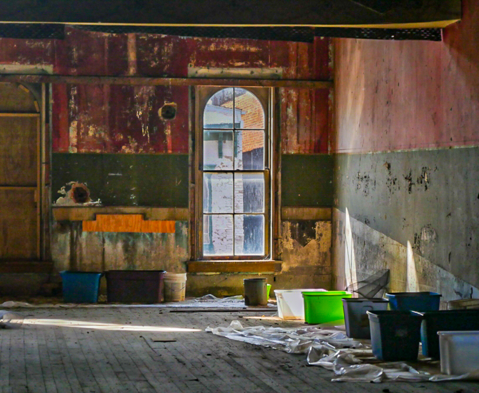 Becca, what a great story this photo holds! Another World is an interesting title, but I think the title could have something about the Opera House to make it more interesting. Good choice in using HDR for this. There is a lot more information in your photo than you give it credit. HDR is great when shooting a window, because it can can catch the outside view as well as the inside. I took your image into Lightroom, and cropped it a bit; added texture slider, down the highlights and up the shadows. I also used Photoshop to remove the pallet on the lower right. What a difference the colors make, and look at your window! |