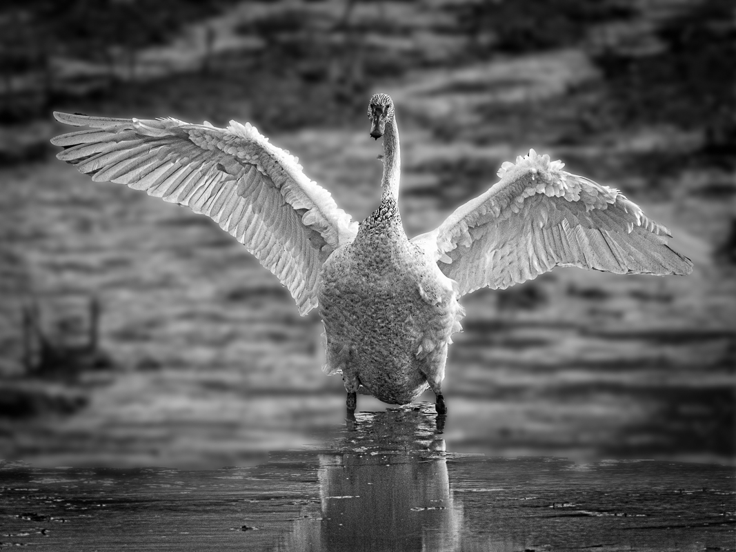 Hi Marie, neither. Swans and geese, herons, have this behavior to dry out their wings, sort of like when dogs shake to get the wet off. It was raining at the time. |