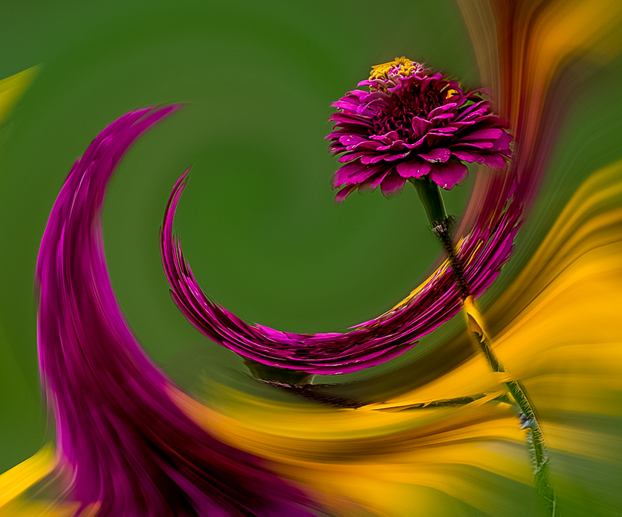 I prefer the yellow version. I find the submitted one a little confusing -- for me, the background is so mysterious that it detracts attention away from the center. About the color: My wife who sees colors far better than I do first comment was that no dahlia has that color. Is there a way to increase the intensity of the center? |