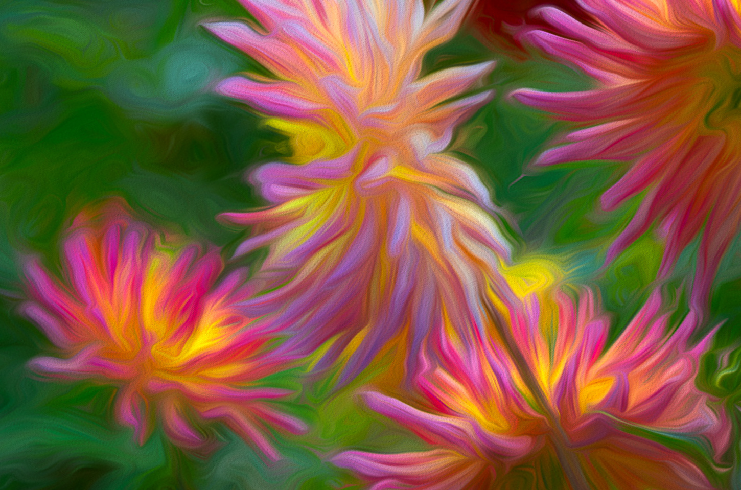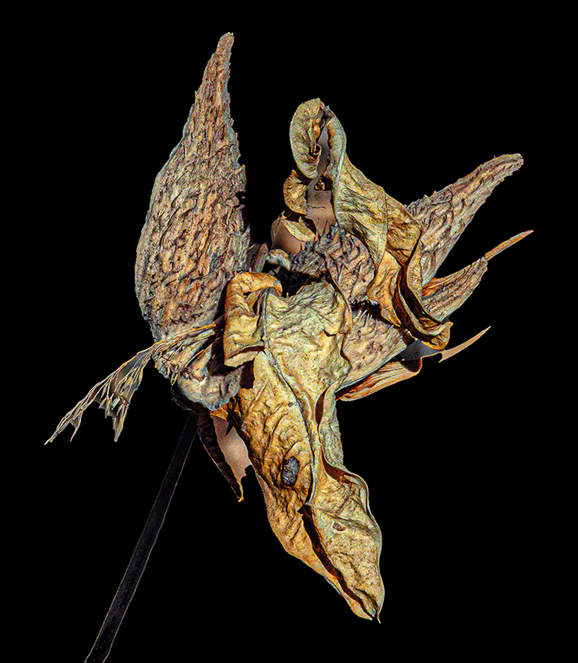 Very interesting image. I think deleting the bottom leaf & one between leaves makes an easier to read composition. It looks a bit over sharpened -- topaz can do that. |