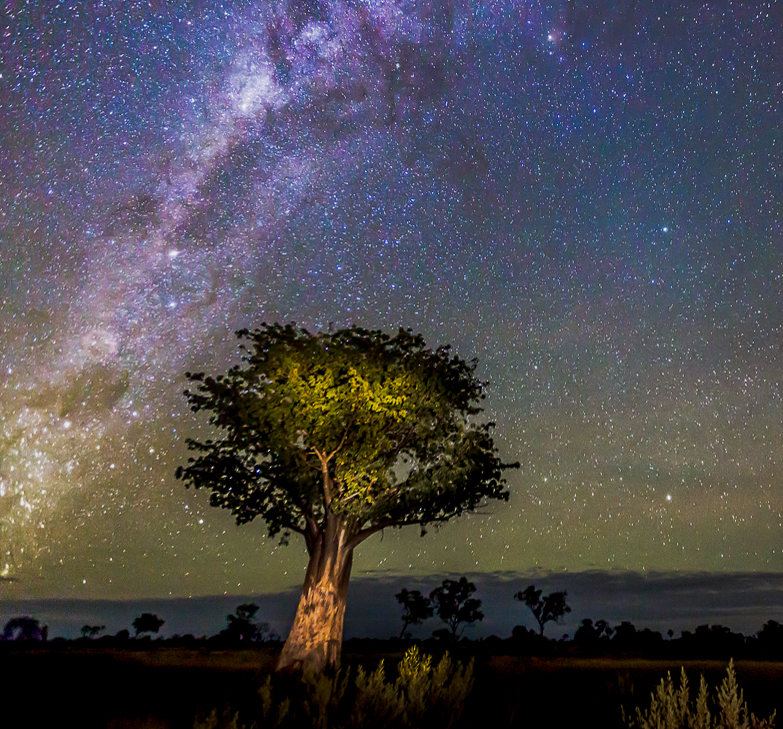 I think I would have cropped it on the right up to the bright star top middle. That would have pushed the tree to the right and the Milky Way from bottom left to top right.