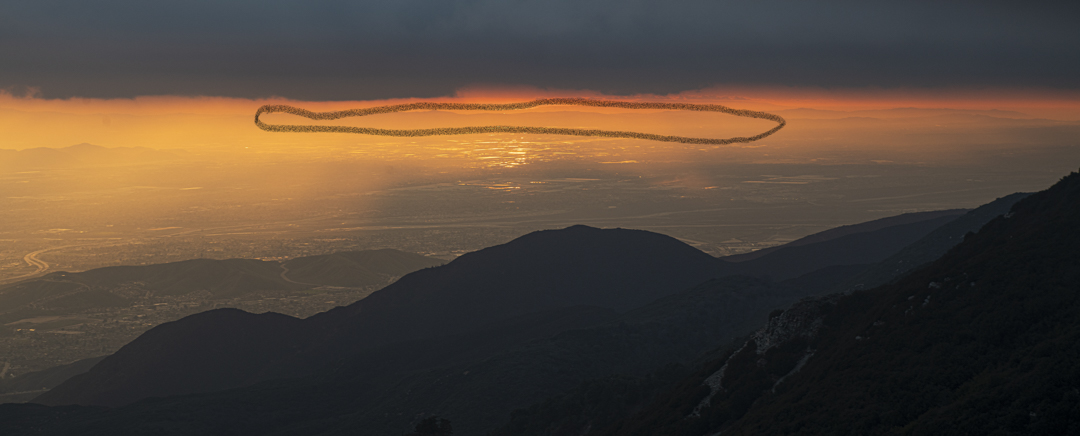 Apparently I really messed up here - I have circled where Catalina Island is. There is, the ocean separating the island from the shore and ocean on the back side of the island. The distance in somewhere 100 miles from where this shot was taken and at an elevation of around 4500 feet. Heave cloud cover above and the light was reflecting of the ocean. |