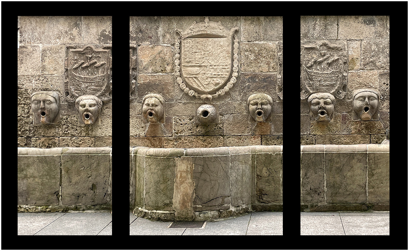 Interesting image - one thought I had - given the vertical repeating pattern - might be interesting to consider displaying as a triptych (illustrated in the attached - each panel should really be framed). I thought the upper ledge adds little. If you were to shoot this again - I'd try to get square to the fountain - so it would be straight (perhaps just my left brain preference). |