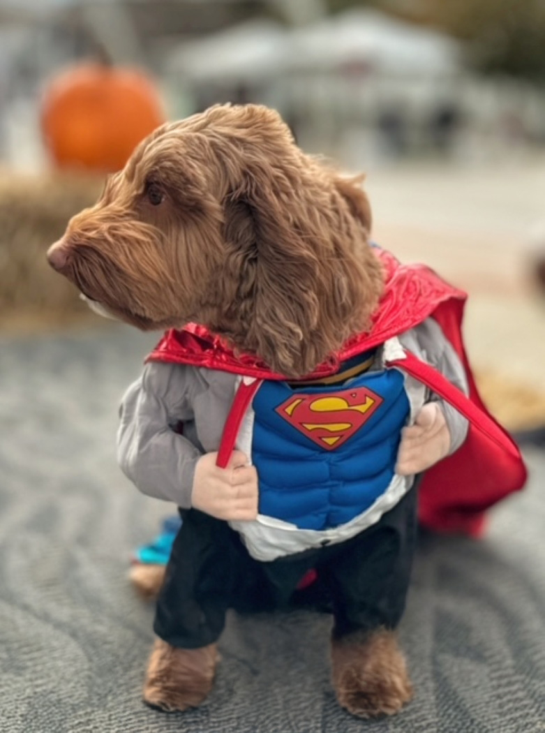I haven't seen a dog picture that I don't like! Nice profile shot. Agree with Jack that the pumpkin distracts (hard to correct) and the lettering on the bottom pulls my gaze as I try to make out what it says. The t-shirt is perfect. Part of me would have rather had the dog looking into the camera. Perfect image to get us in the Halloween mood. |