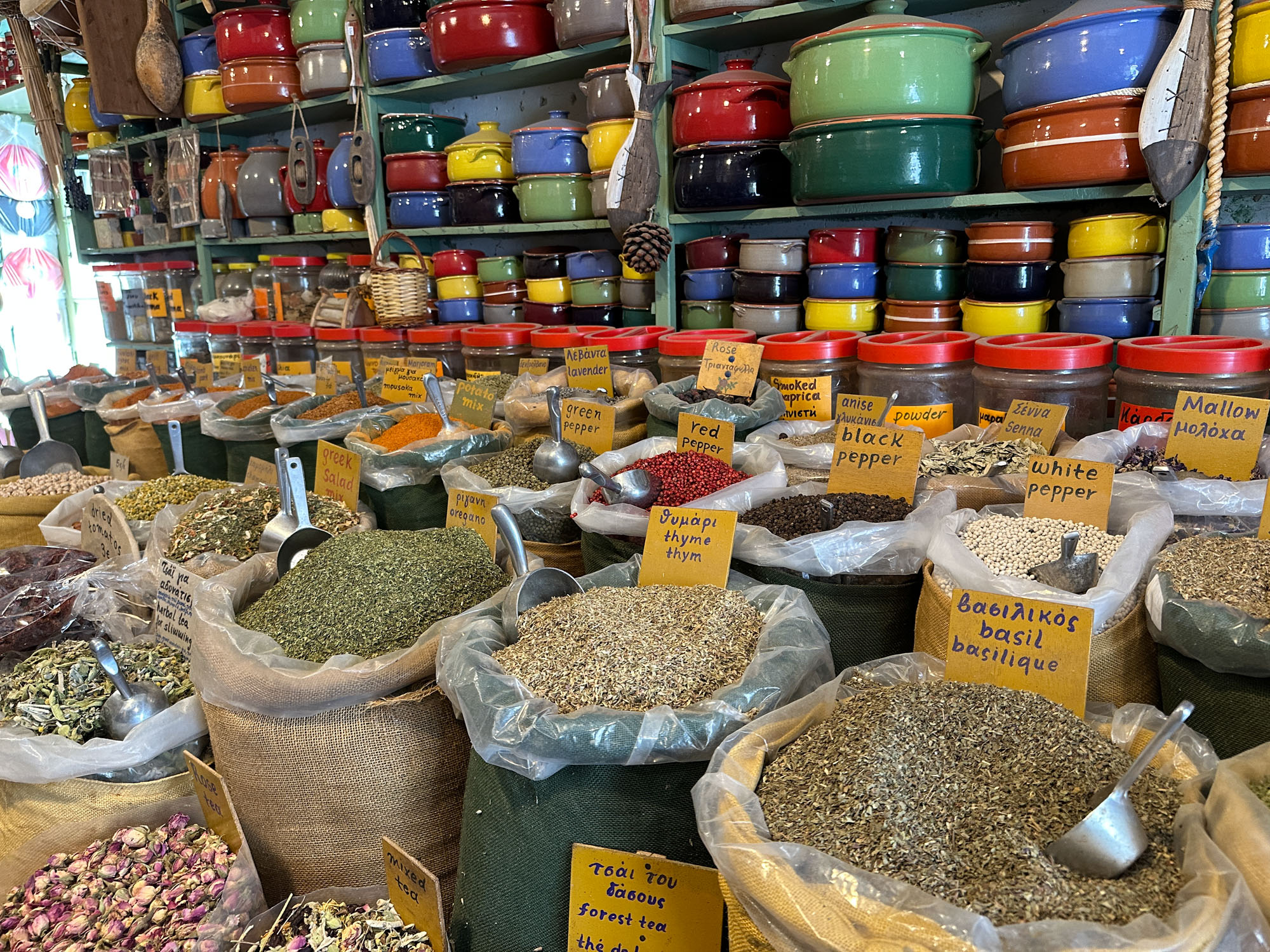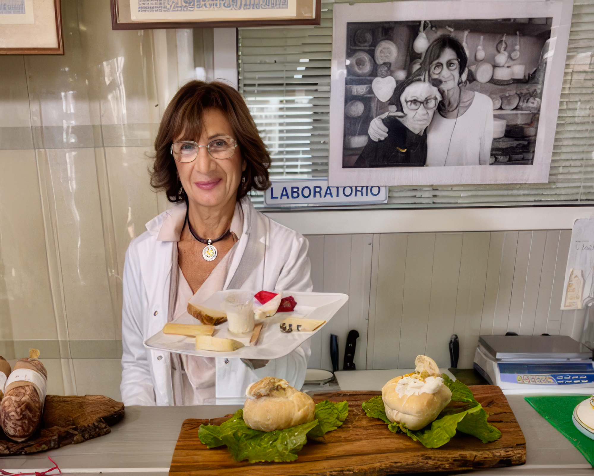Interesting image - two things catch my eye - the photograph (I wonder who the shop owner is posing with) and the LABORATORIO sign; is that related to the chesse making process or something totally different? The cheeses on the plate seem less sharp than other parts of the photo - perhaps due to movement. I wonder if there is another image in this (see attached) - where I cropped, sharpened and expanded. Losing the foreground makes it less clear where this is. |