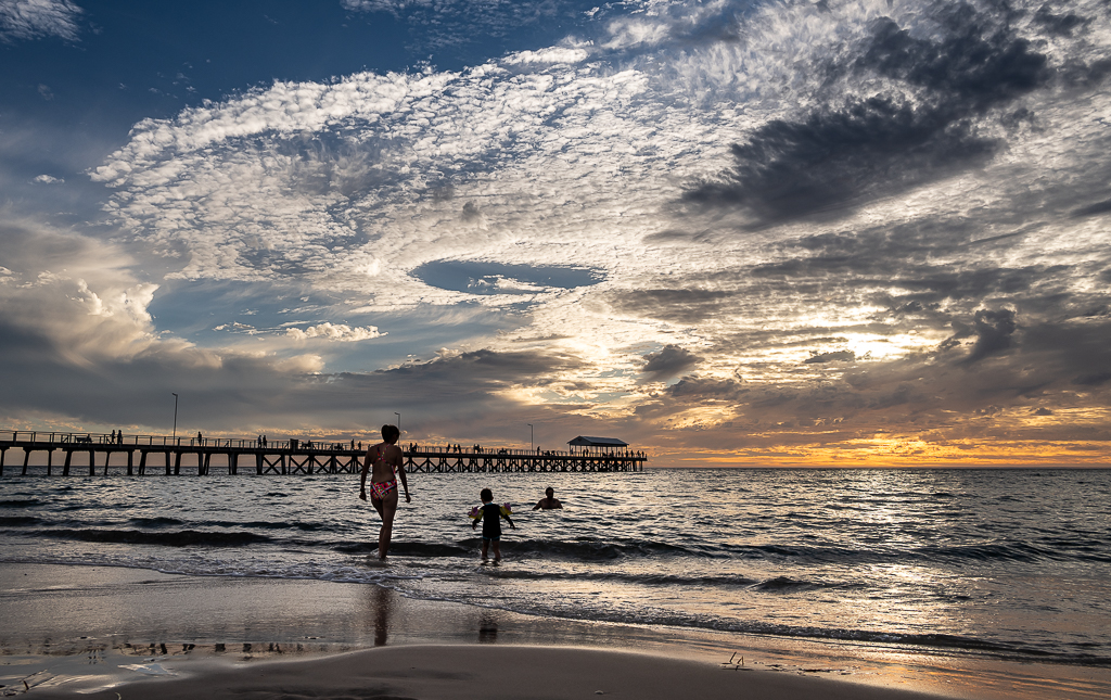 Great image and great composition. The people in the foreground are standing just in the right spot. The gentile shape of the waves, the reflection of the soft light on the water and the detail of the beautiful cloud formations make it a really beautiful seascape. Congratulations Prasad. |
