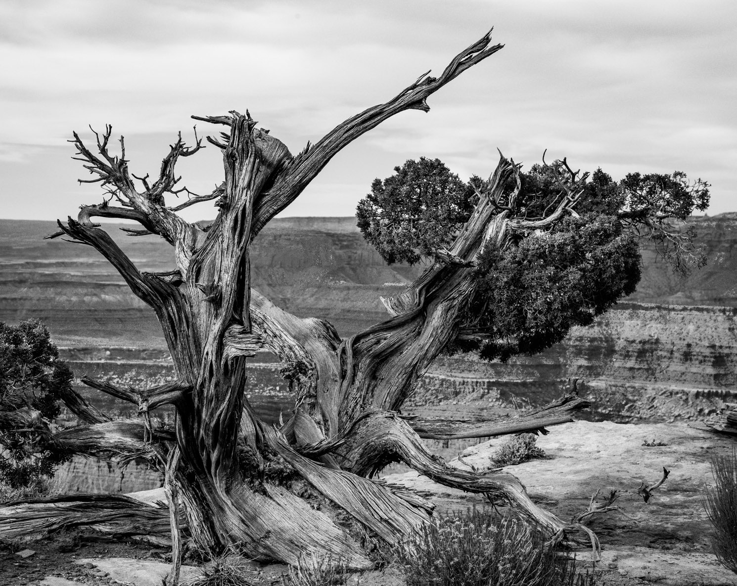 Lovely shot, Allen. I love the juxtaposition between the twisted wood and the canyon rocks. I did two things in my version: I cropped in on the left side. I didn't think that bush added much to the composition. I think my crop has a bit better overall balance. I also did a bit of dodging in the foliage to bring back some of the highlights to give a bit more dimensionality. |