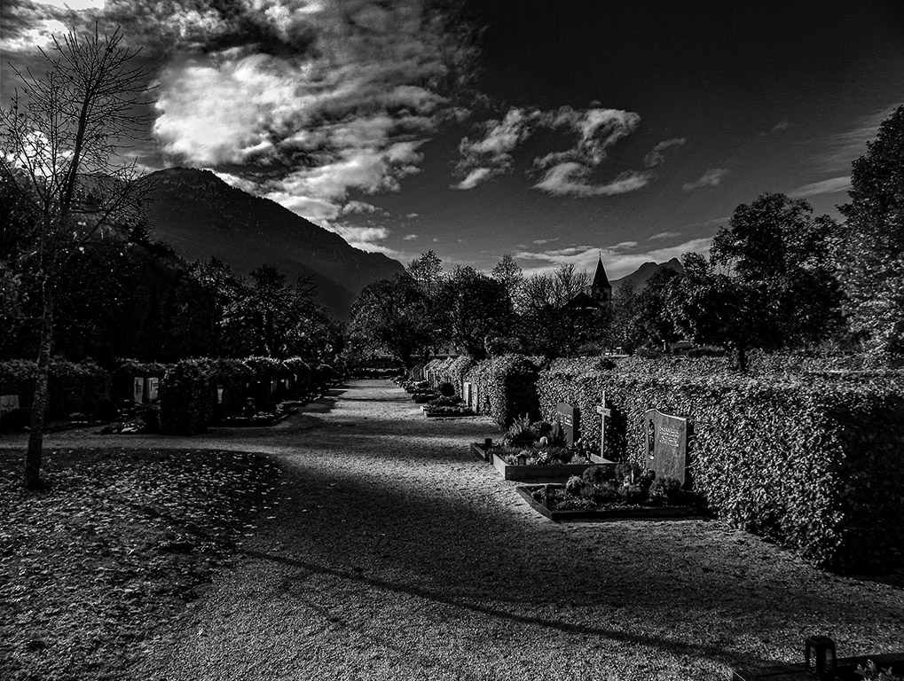 Wonderful, moody image. I did a couple of things in my edit. I cropped in a bit on the right and did a bit of cloning to get rid of those bits of white along the edge. I also darkened the mountain as it kept drawing my eye from what I saw as the main subject: the corridor down the middle. |