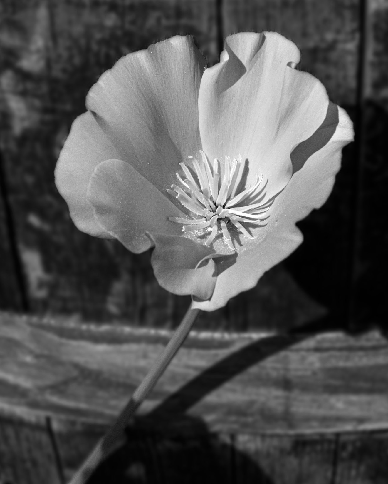 I liked Jim's suggestion to consistently blur the background but I also liked the black and white rendering, so I took Jim's version in Photoshop. I cropped it in even more, then applied a B&W adjustment layer. I then upped the contrast with a curves layer. I then merged the layers and applied a bit of dehaze in the Camera Raw filter. |