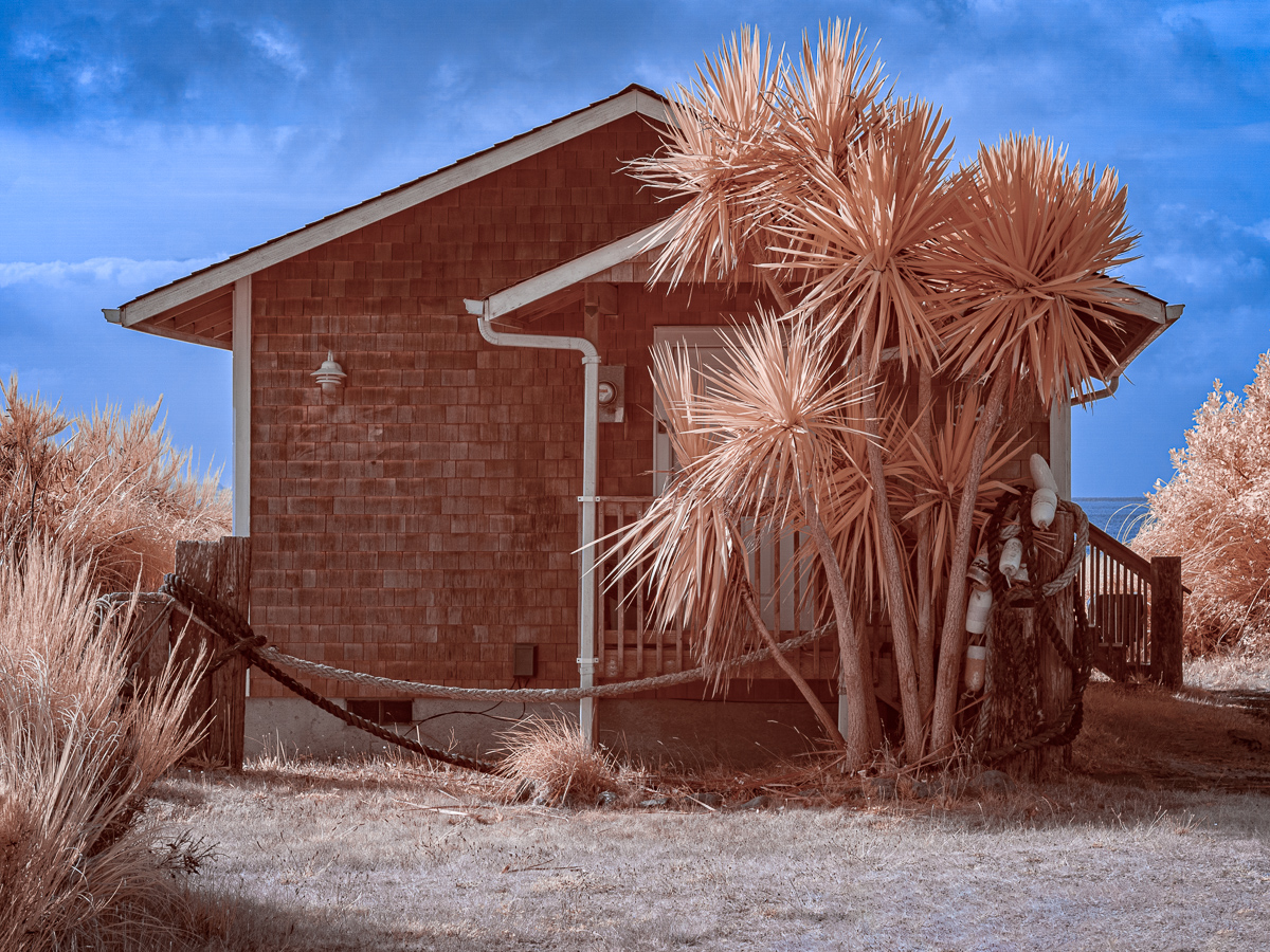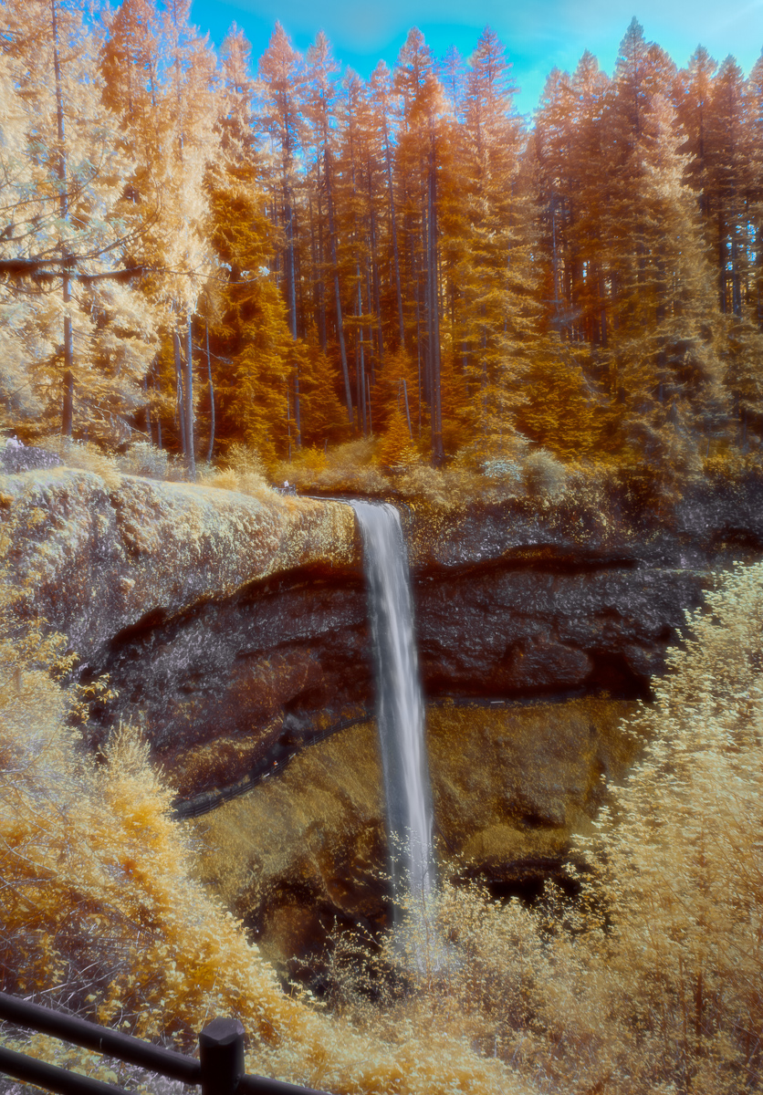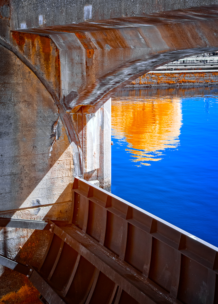The orange on the concrete is the algae. The blue is the sky reflected in the water. I used a custom profile in Lightroom Classic based on a LUT I created in Photoshop. The red-blue swap was incorporated into that LUT. |