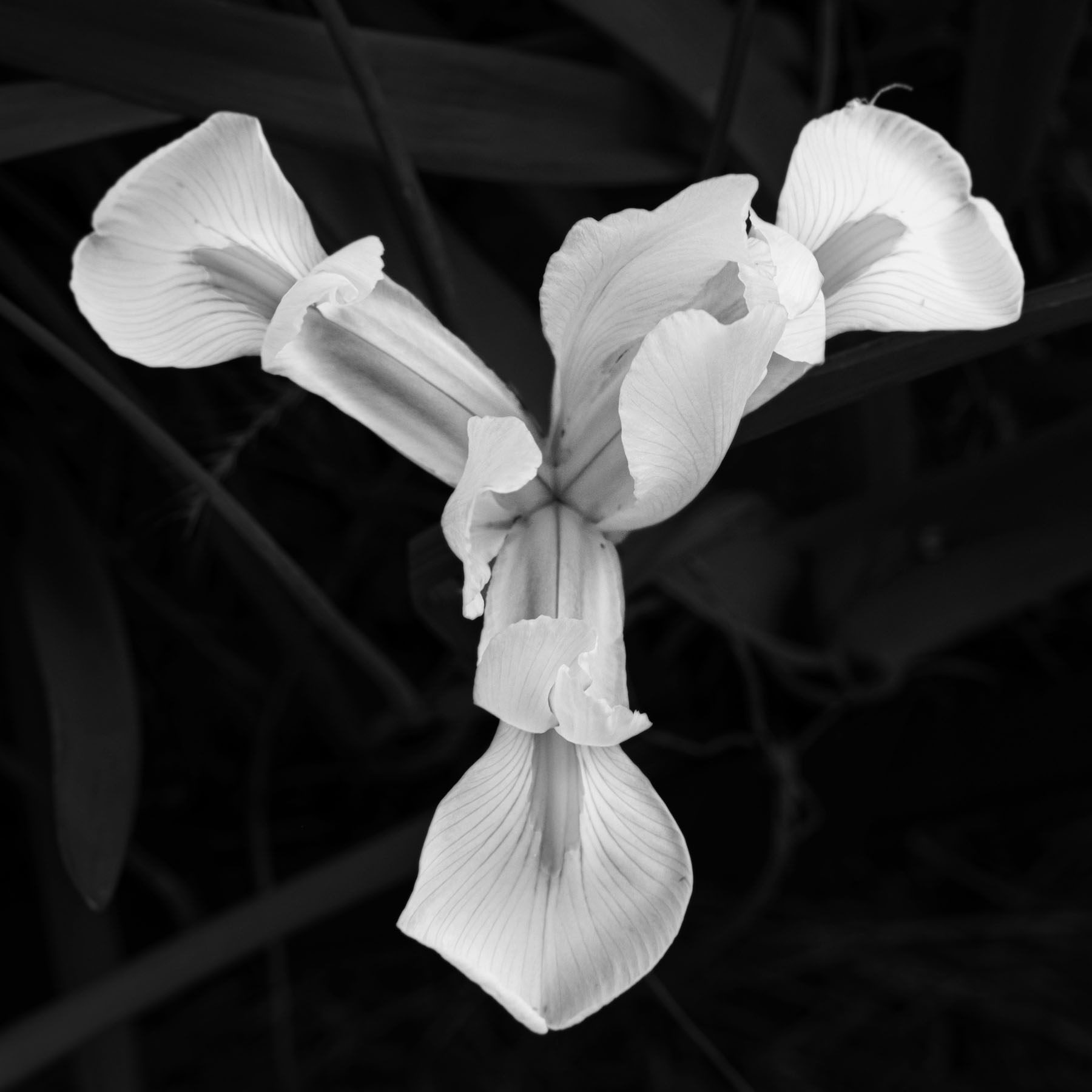 I like the flower in black and white, but I found the background too busy for my taste. I took it into Photoshop, duplicated the layer, did a "select subject" and created a mask. I then added a blank layer between the two layers and filled it with black and dropped the opacity until the background seemed dark enough. I finally added a vignette to further darken the edges. |